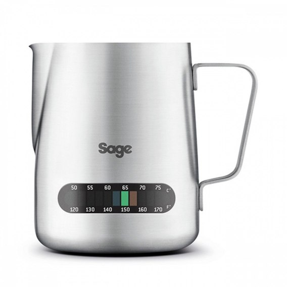 Dzbanek na mleko ze wskaźnikiem termicznym zapewnia pełną kontrolę nad temperaturą. Wbudowany termometr ułatwiający spienianie mleka do optymalnej temperatury pomiędzy 55 a 75°C. Dzióbek specjalnie wyprofilowany pod kątem tworzenia wzorków latte art.