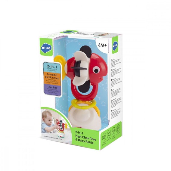 • Wielofunkcyjność: Połączenie funkcji grzechotki i stabilnej podstawy z przyssawką sprawia, że zabawka jest wielofunkcyjna i może być używana zarówno do zabawy, jak i jako pomoc w rozwoju umiejętności manualnych dziecka.