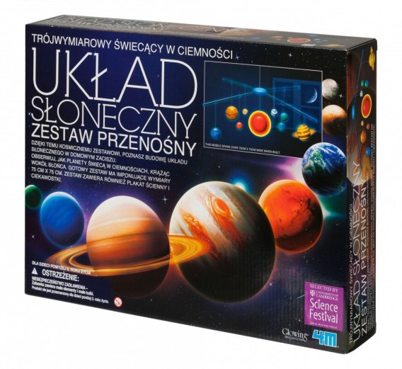 To doskonała lekcja astronomii dla każdego! Poprzez modelowanie poszczególnych planet z zapałem sięgniecie po więcej informacji dotyczących kosmosu. Nastrój, jaki wywoła barwna konstrukcja w jednym z pokoi, wprawi was zachwyt! Szczególnie po zmroku! Zestaw Układ Słoneczny pozwala na wykonanie modelu o wymiarach 42 x 60 cm. Możecie powiesić go tuż pod sufitem i obserwować planety nawet w pochmurne noce! Dodatkowo otrzymacie duży plakat pełen kosmicznych ciekawostek!