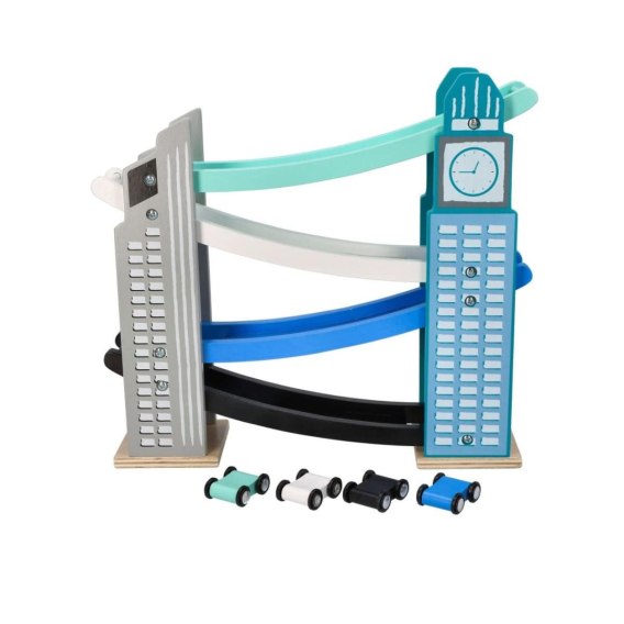 Zjeżdżalnia dla samochodów - Drapacz chmur to fantastyczna zabawka dla dzieci już od 18m+. Dwie majestatyczne wieże połączone czterema kolorowymi torami zapewniają ekscytującą zabawę czterema autkami. Każdy mały fan samochodów będzie zachwycony!
